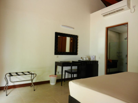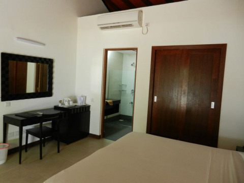 16 номерів Water Bungalow (бунгало над водою. Телевізор, супутникове ТБ, ванна кімната з ванною, підлога обладнаний скляною панеллю)