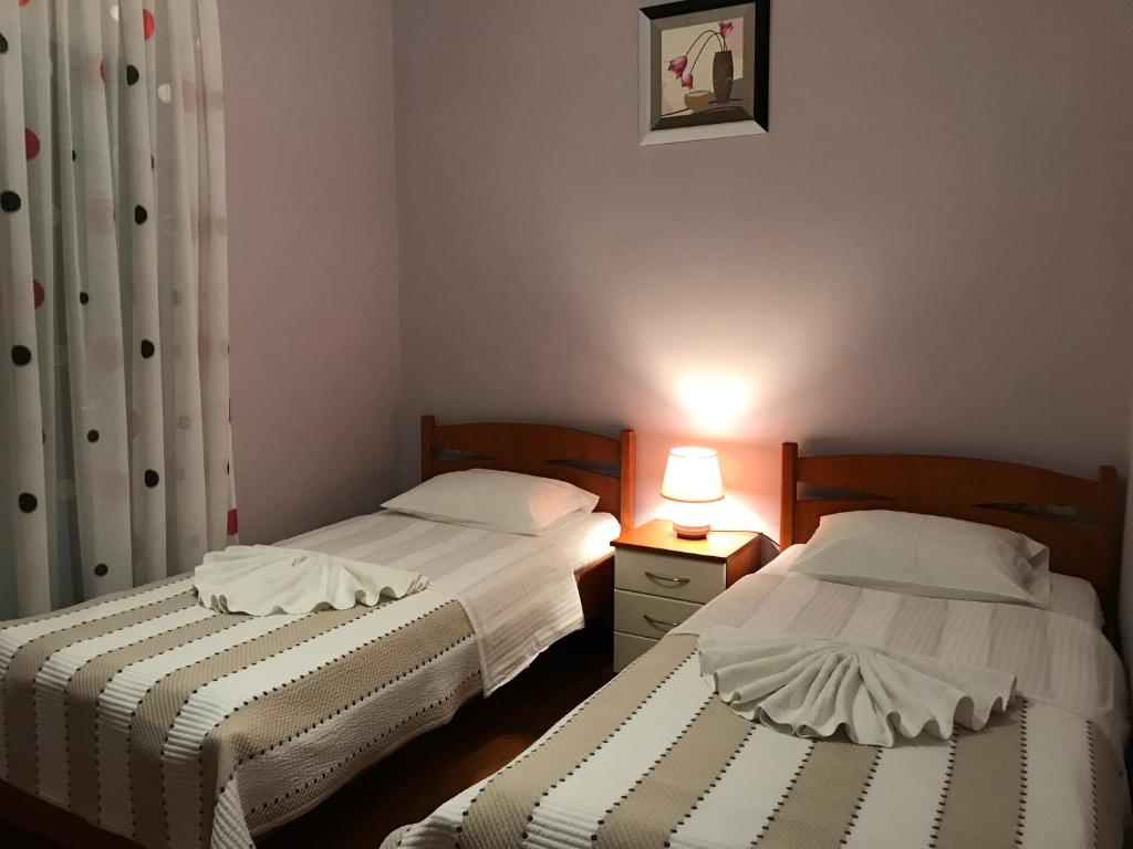 Будівля готелю складається з 3-х поверхів без ліфта. Всього в готелі 11 номерів з прямим або бічним видом на море (SV / SSV). У всіх номерах є балкон, кондиціонер, телевізор (національні албанські канали), міні-холодильник, шафа, стіл, стільці, дзеркало, приліжкові тумби, ванна кімната (душові приналежності, душова кабіна, фен, рушники). У номерах немає можливості поставити додаткове ліжко. У 6 номерах з 11 є обладнана кухня.