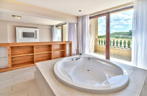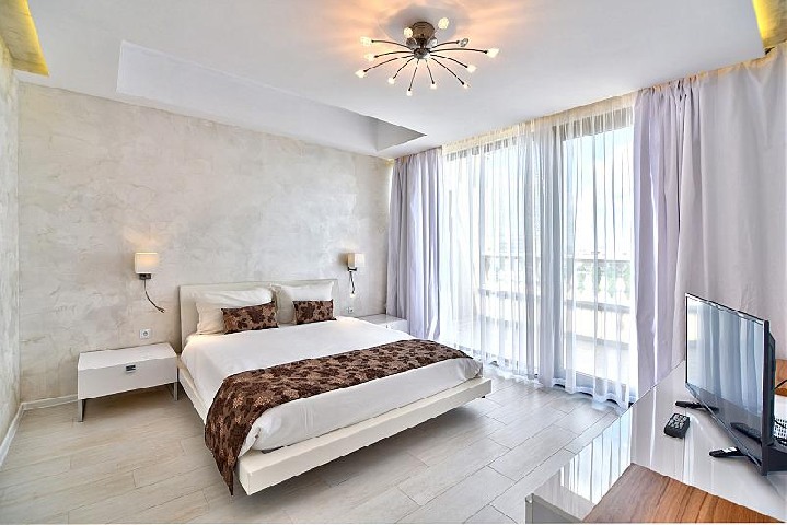 У південній частині комплексу, в 200м. від пляжу (Рів'єра), 291 номер, VIP апартаменти на 8-му поверсі.