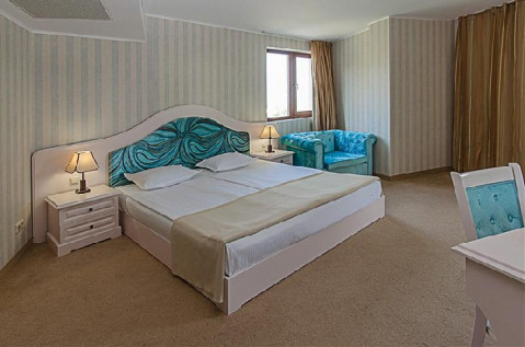 DBL SUPERIOR SV: велика кімната; подружнє ліжко, розкладне крісло і стіл з двома стільцями; великий балкон з видом на море; ванна кімната з душем; макс. 2в. + 1р .; 34 м2;
