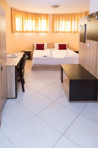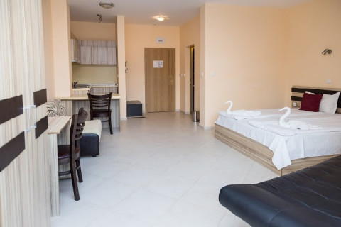 STUDIO: двомісне ліжко, 2 додаткові ліжка; кухонний куточок з обладнанням / плита, ел.чайник, духовка або мікрохвильовка /; 1 ванна кімната з душем; макс. в.2 + 2р., 3 + 1р., 3в .; 30 м2.