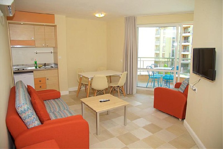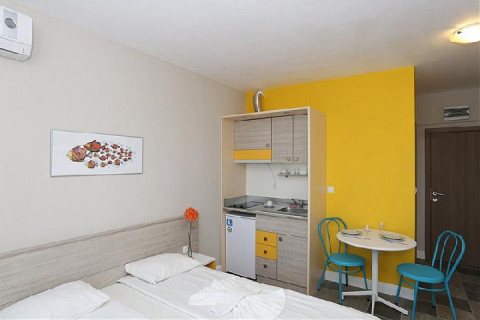 1BEDROOM APARTMENT: 2 приміщення, двері між кімнатами, розкладний диван; макс.2в. + 2р., 3в .; з видом на басейн; 40м2;