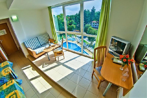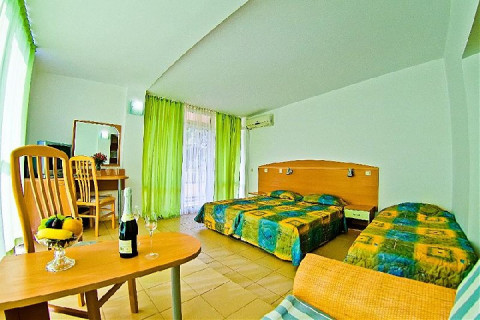 DBL SUPERIOR: три односпальні ліжка, розкладачка; 1 ванна кімната з душем; макс.2в. + 2р., 4в., 27м2., з видом на басейн.