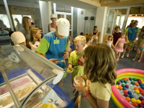 Дитячі вихователі зі спеціальною освітою, Маро-клуб: міні-клуб для дітей від 3 до 7 років, максі-клуб для дітей від 7 до 12 років, розважальні програми для тінейджерів, багата розважальна програма для всієї родини з квітня по листопад, дитяча ігрова майданчик, дитячий розважальний центр: настільний футбол, відео-ігри, відкритий басейн з окремим дитячим басейном, школа плавання (за доп. плату).
