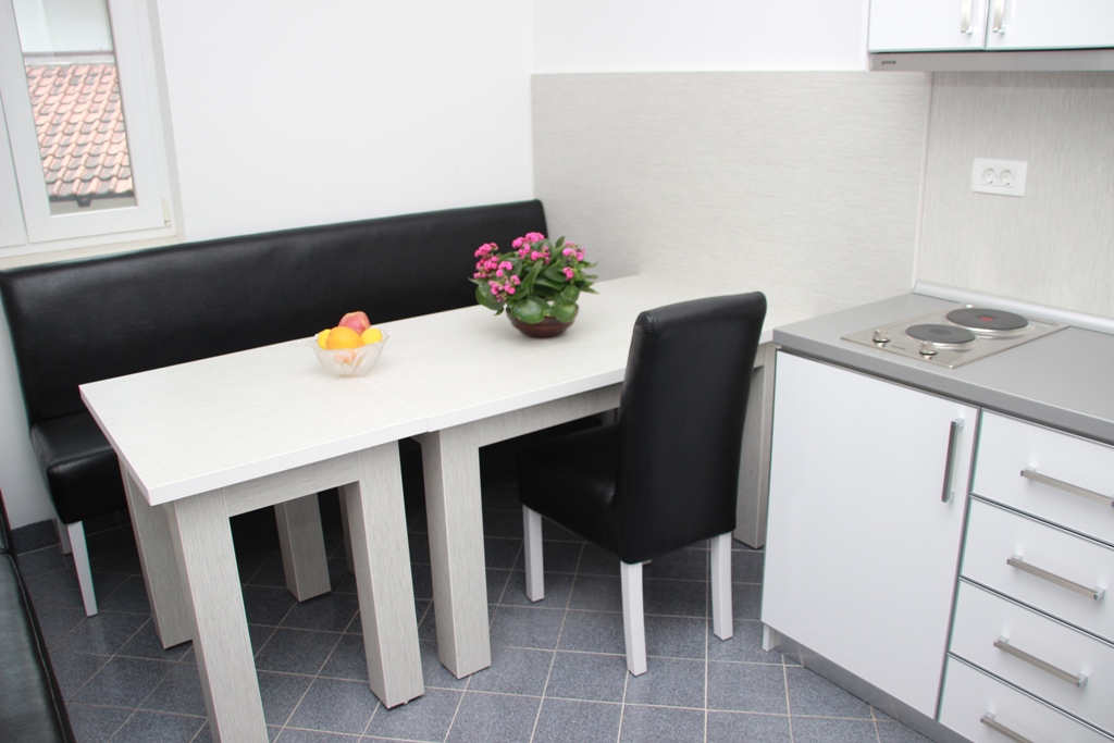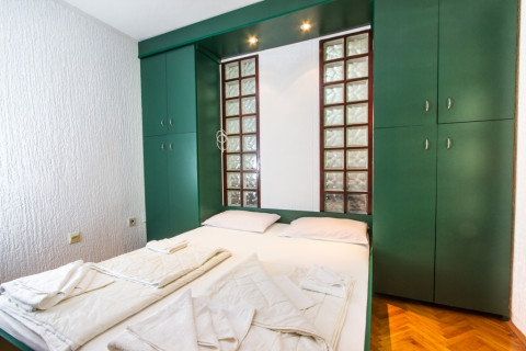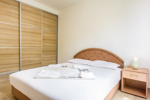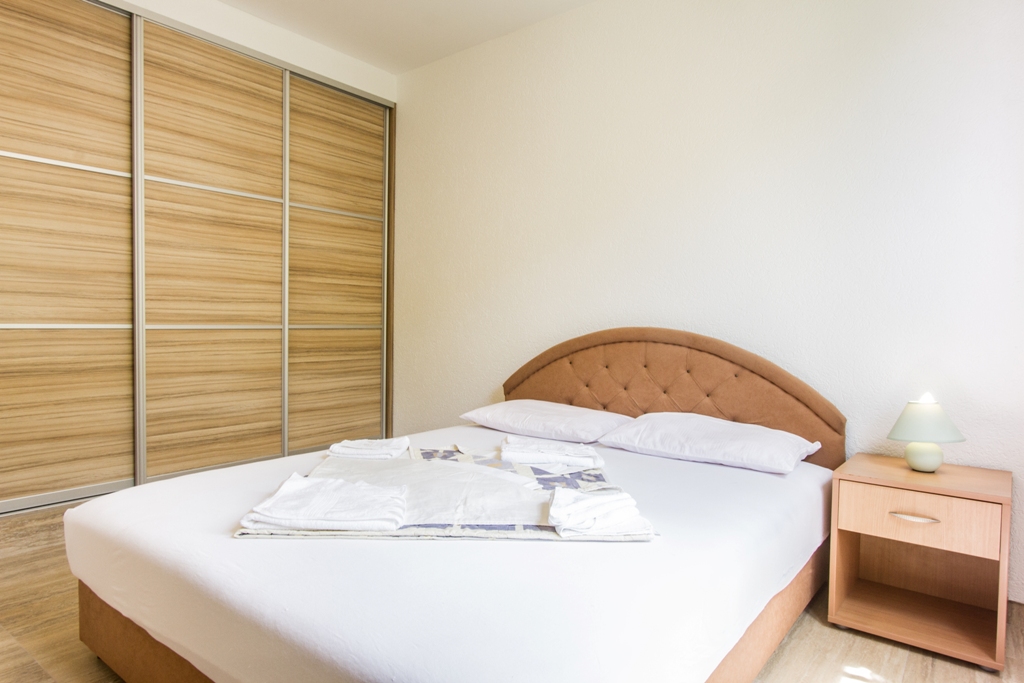 В АРР 04 -1 bedroom: вітальня з розкладним диваном, спальня з французьким ліжком, повністю обладнана кухня, холодильник, супутникове ТБ, Wi Fi інтернет, кондиціонер, санвузол з душовою кабіною, фен, тераса з видом на море. Максимальне розміщення - 4 людини.
