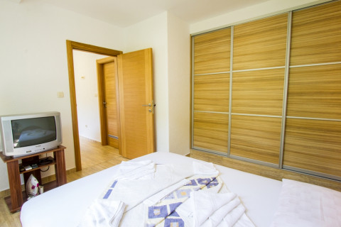 В АРР 06 - 2 bedrooms: вітальня з розкладним диваном, дві спальні з французьким ліжком, повністю обладнана кухня, холодильник, супутникове ТБ, Wi Fi інтернет, кондиціонер, санвузол з душовою кабіною, фен, тераса з видом на море. Максимальне розміщення - 6 осіб.