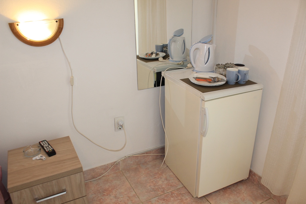 B STD: Кондиціонер, холодильник, електрочайник, фен та праска та прасувальна дошка (загальні, на поверсі), балкон, сушарка, душова кімната, кабельне телебачення.