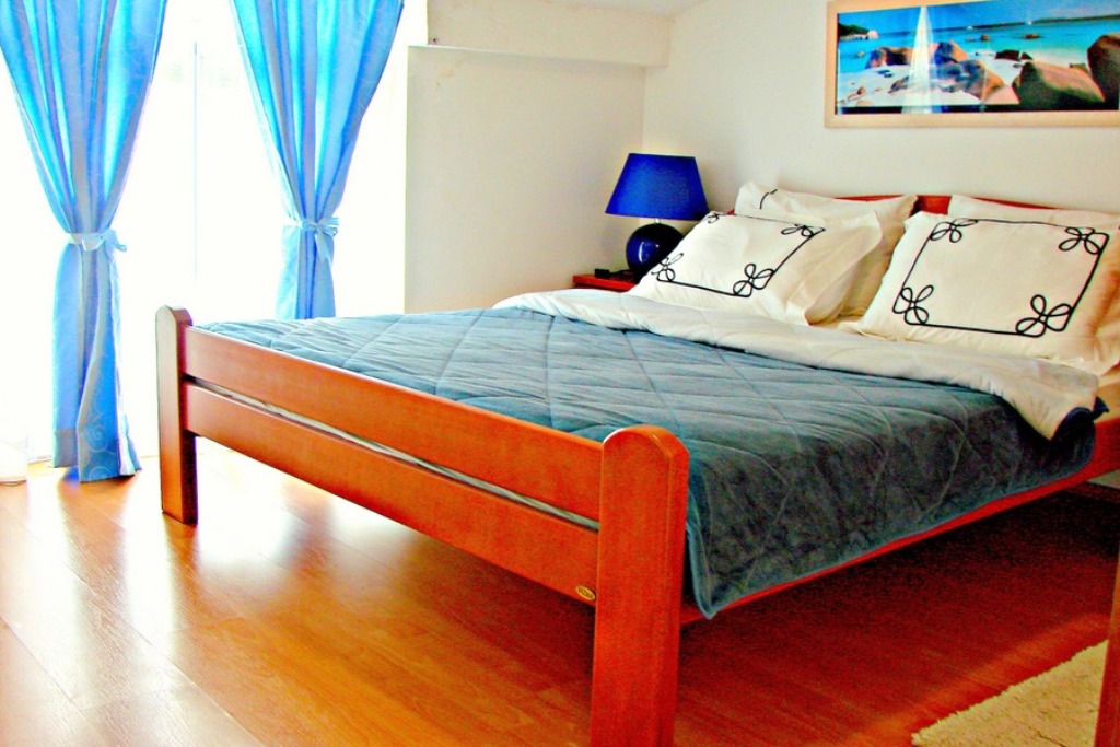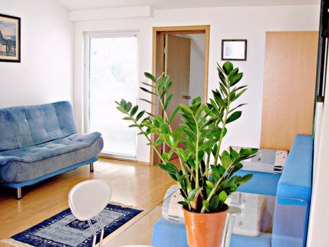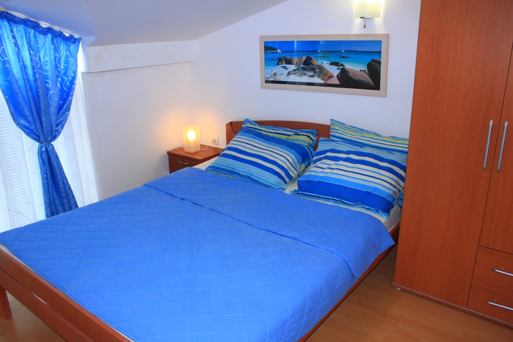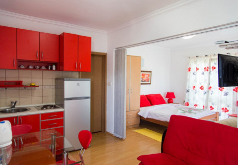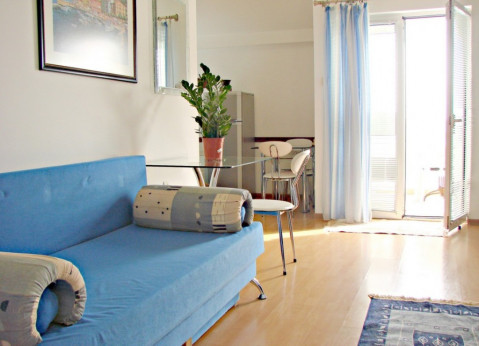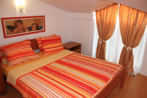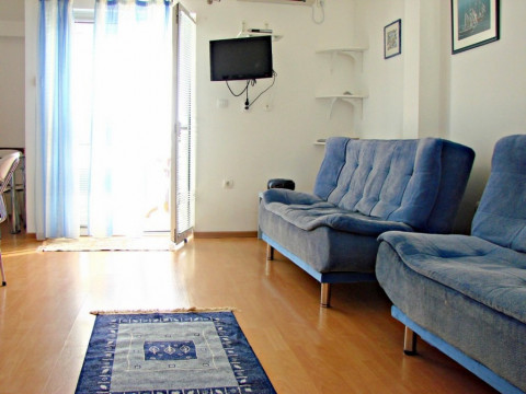 В STUD 02+2 SV №1: на другому поверсі, однокімнатний номер, французьке ліжко, розкладний диван, їдальня зона, кухня, плазмовий телевізор, кондиціонер, душова кабіна, фен. Покриття підлоги - ламінат. Балкон з видом на море.