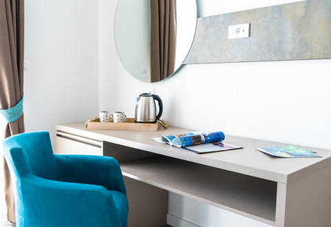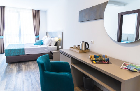 В DBL SUP: Однокімнатний номер, французьке або роздільне ліжко, софа, кондиціонер, супутникове ТБ, Wi Fi інтернет, міні бар, санвузол з душовою кабіною, балкон. Площа 26 м2. Максимальне розміщення: 2+1.