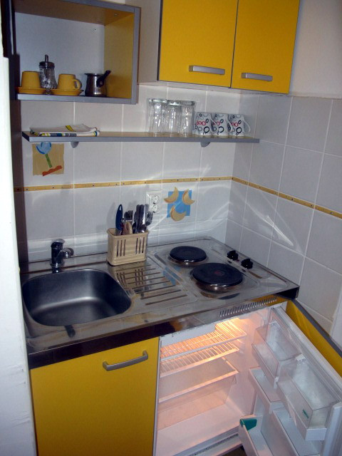 B STUD 03: Однокімнатний номер, французьке ліжко, два раскладноих крісла, холодильник, міні-кухня, Wi-Fi доступ в інтернет, кондиціонер, кабельне ТБ, сейф, балкон. Площа-45 м2. Максимальна розміщення - 4 чол.
