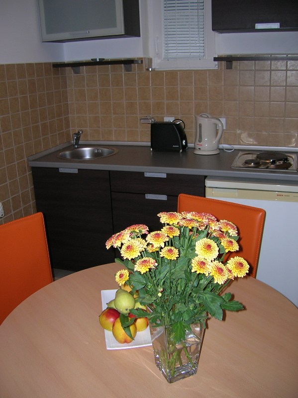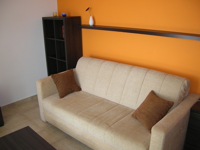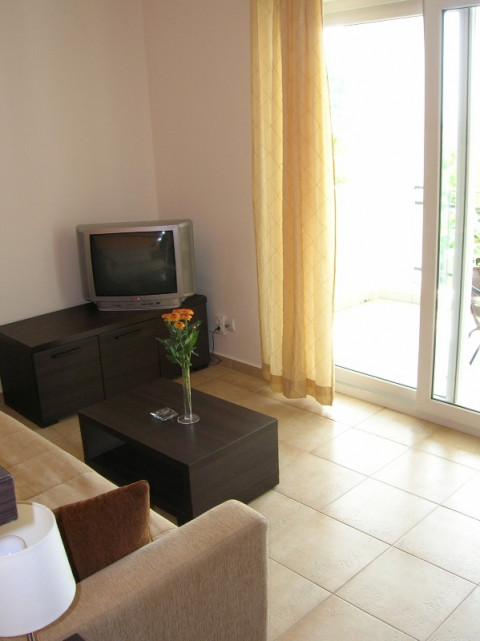 Спальна з французьким ліжком, вітальня з розкладним диваном, кухонний блок, холодильник, кондиціонер, кабельне телебачення, сейф, балкон з видом на море, фен, душова кімната. Максимальне розміщення - 2+2.