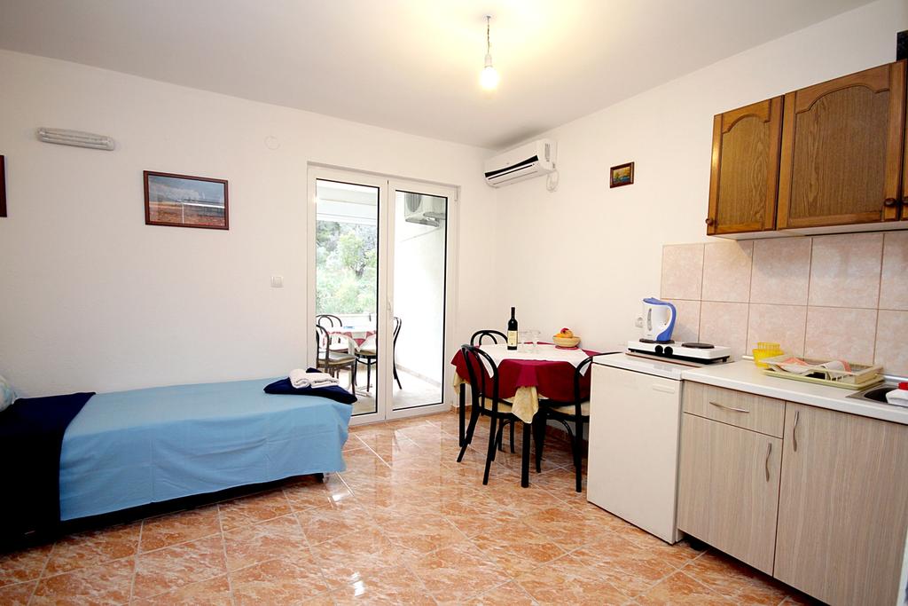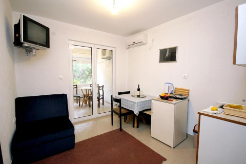 В STUD 03 SV: Однокімнатний номер, французьке ліжко та софа, кондиціонер, супутникове ТБ, Wi Fi інтернет, міні кухня, чайник, санвузол з душовою кабіною, фен, балкон c видом на море. Площа: 35 м2. Максимальне розміщення: 3 дор.