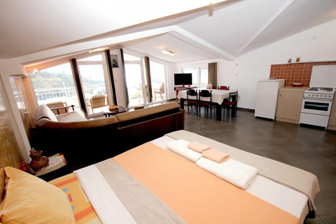 В BIG STUD 04 SV: Однокімнатний номер, французьке ліжко та розкладний диван, повністю обладнана кухня, кондиціонер, супутникове ТБ, Wi Fi інтернет, санвузол з душовою кабіною, фен, балкон з видом на море. Площа: 70 м2. Максимальне розміщення: 4 дор.