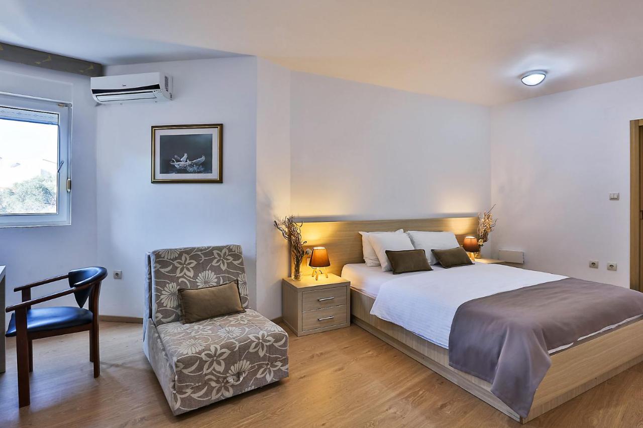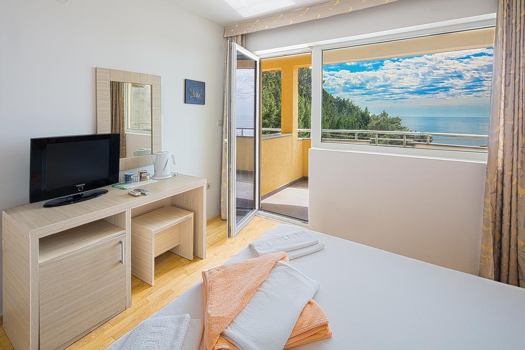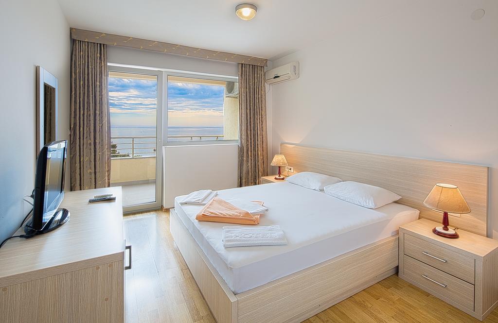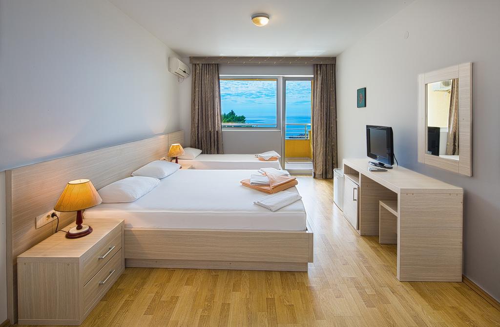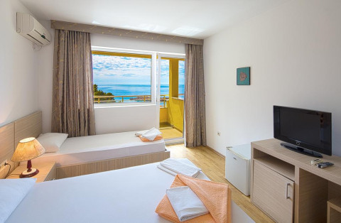 В TRPL SUPERIOR: Спальня з французьким ліжком, вітальня з розкладним диваном, холодильник, кабельне телебачення, кондиціонер, електрочайник, фен, балкон з видом на море, душ.