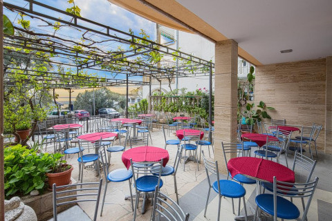 В 200м від галькового муніципального пляжу (лежак - 2 євро, парасолька - 3 євро).