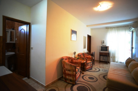 В APP 05 SV, 55m2: вітальня з диваном і двома розкладними кріслами, повністю обладнана кухня, спальня з французьким ліжком, кондиціонер, супутникове ТБ (телевізор в кожній кімнаті), Wi Fi інтернет, сейф на рецепції готелю, санвузол з душовою кабіною, велика тераса з прямим видом на море. Площа 55м2. Макс розміщення: 2 дор + 3 дит.