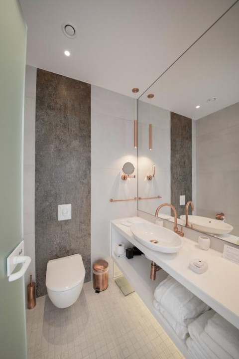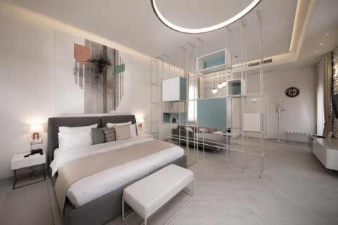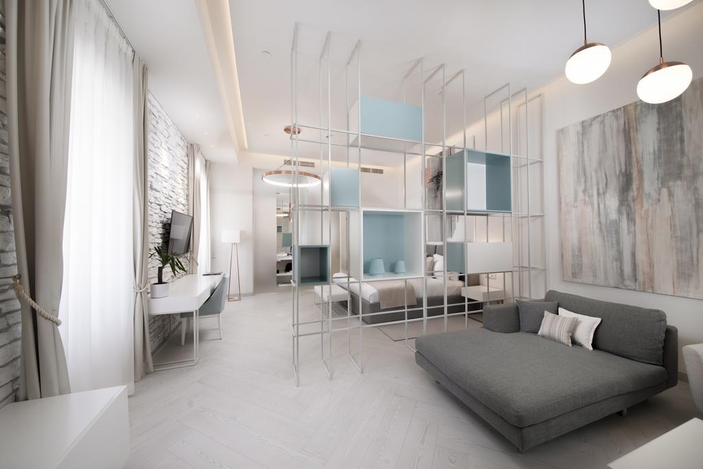 У JUNIOR APP GV: зонований номер, що складається з вітальні та спальні з французької або роздільними ліжками, кондиціонер, Wi Fi інтернет, кабельне телебачення, сейф, міні бар, санвузол з душовою кабіною, халати, вид у двір. Площа: 39-50 м2. Максимальне розміщення - 2 чол.
