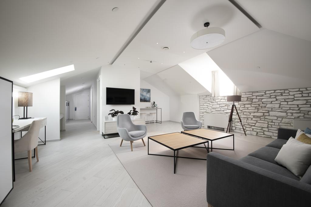 У SUITE GV: двокімнатний номер, що складається з вітальні та спальні з французьким ліжком, кондиціонер, Wi Fi інтернет, кабельне телебачення, сейф, міні бар, санвузол з душовою кабіною, халати, вид у двір. Площа: 43-72 м2. Максимальне розміщення - 3 чол
