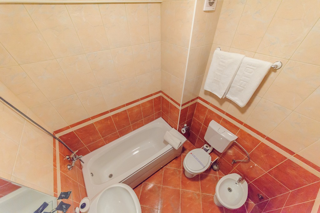 В АРР 1 bed room: всього 9 апартаментів. Двокімнатний апартамент, в спальні - французьке ліжко, в вітальні диван, що розкладається, повністю обладнана кухня, холодильник, санвузол з душовою кабіною або ванною, кондиціонер, телефон, балкон з видом на парк. Максимальне розміщення - 4 людини. Площа номера-45-50 м2.