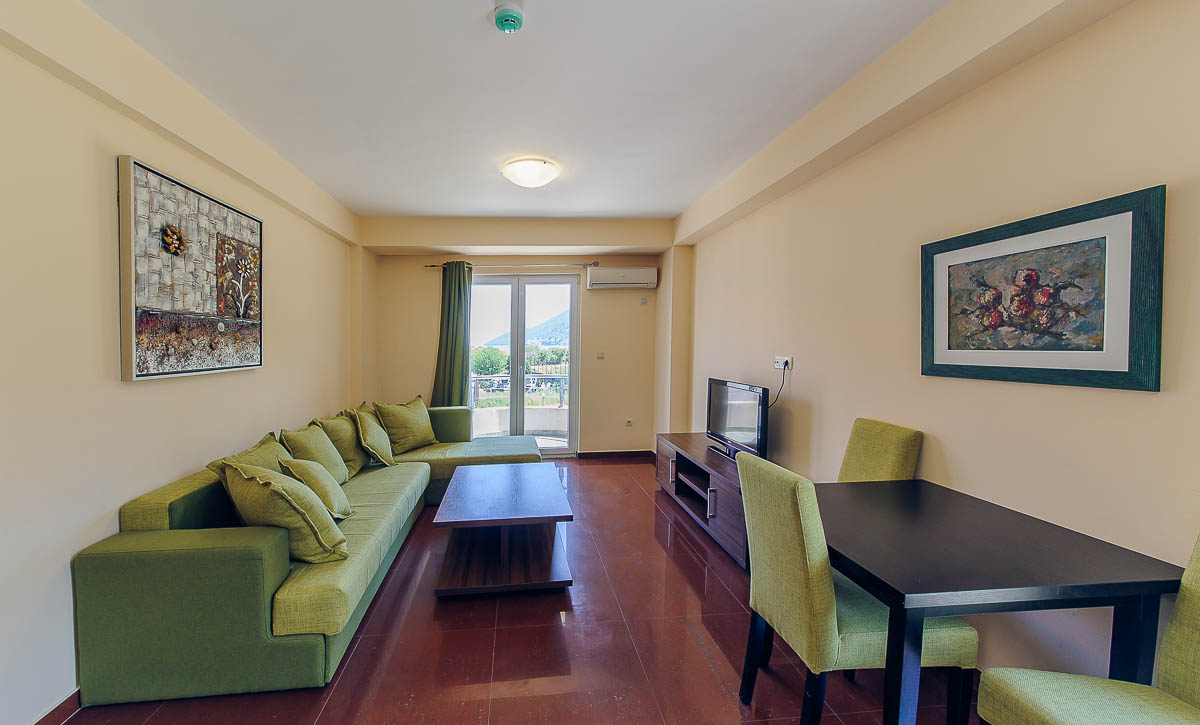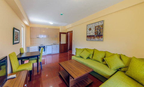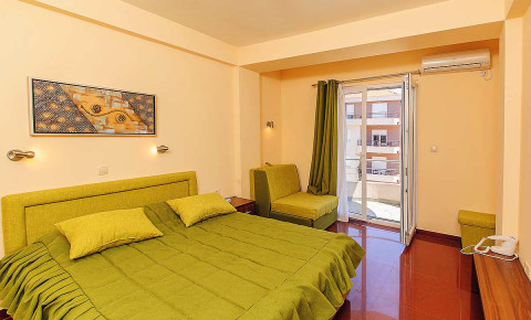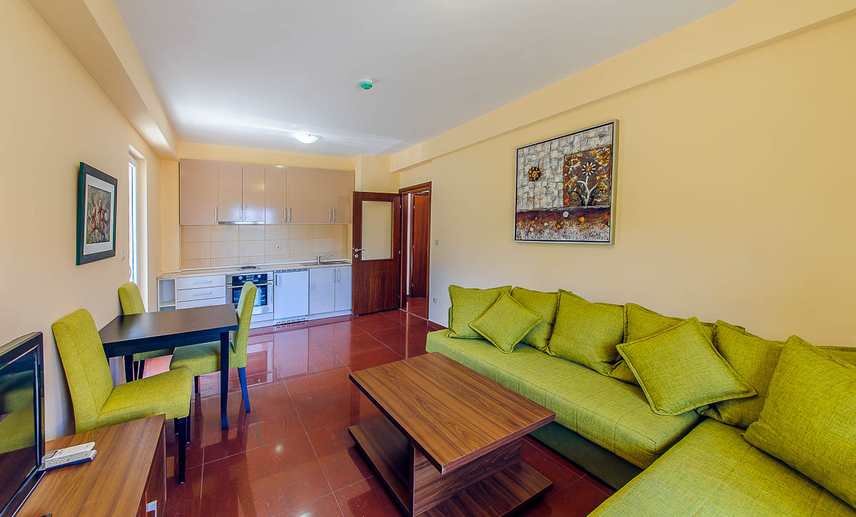 В АРР 1 BED ROOM: апартаменти знаходяться на верхніх поверхах готелю. Двокімнатний апартамент з вітальні і однією спальнею з французьким ліжком, у вітальні розкладний диван, повністю обладнана кухня, холодильник, супутникове ТБ (телевізор у вітальні і спальні), просторий санвузол з душовою кабіною, кондиціонер, балкон. Апартамент обладнаний для прийому людей з обмеженими можливостями. Праска і дошку для прасування на запит. Дитяче ліжко і пеленальний столик за запитом. Максимальна розміщення-4 людини. Площа номера 56 м2.