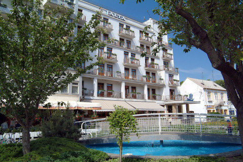 Готель розташований на пішохідній вулиці в центрі курорту Пьештяни, через міст знаходиться Курортний острів з безліччю спа-салонів, басейнів і санаторіїв. Головна визначна пам'ятка готелю - Курортний зал, побудований в 1934 році і є архітектурним шедевром. В даний час в ньому розташовується ресторан. Готель знаходиться поруч з бальнеологічним музеєм, зеленим парком і водосховищем Сіхава.