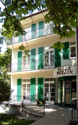 Готель розташований в пішохідній зоні курорту Пьештяни, в зелені парку, біля самого пішохідного моста, на березі річки Ваг, серед численних кафе, магазинів, ресторанів. Будівля готелю побудована в 1930 році і оновлено в 1999 році. Родзинкою готелю є затишна, домашня атмосфера.