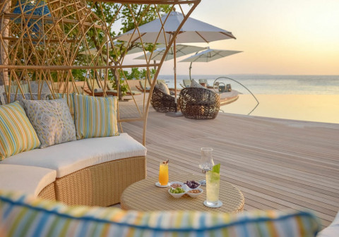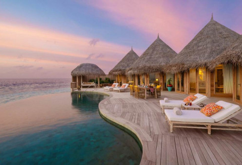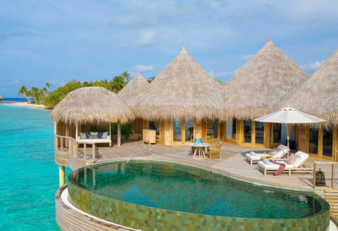 2 номера Ocean Residence With Private Pool (453 кв.м, водные виллы имеют овальную спальню, с прилегающей гостиной и столовой, которые выходят на просторную террасу с частным бассейном и собственным спуском в воду)