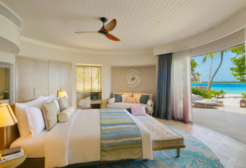 9 номеров Beach House With Private Pool (309 кв.м, пляжные виллы расположены вдоль берега, имеют овальную спальню и прилегающую гостиную, которая выходит на просторную частную террасу с бассейном, в окружении сада с видом на пляж)