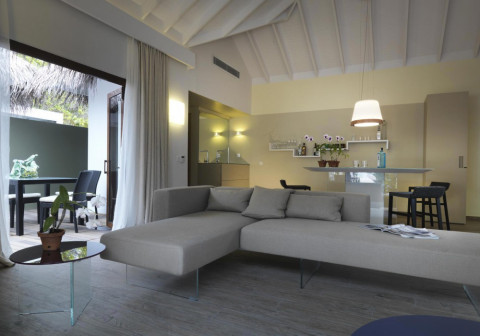 Дизайнерский отель расположен на небольшом острове в атолле Лавиани в 120 км от Мале. Трансфер до острова осуществляется на гидросамолете (30 минут).