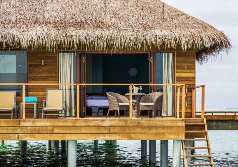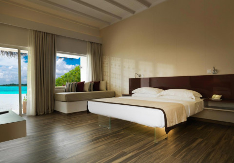 15 номеров Lagoon Suite (70 кв.м, виллы на воде, джакузи в ванной комнате, терраса с лежаками и спуск в лагуну)