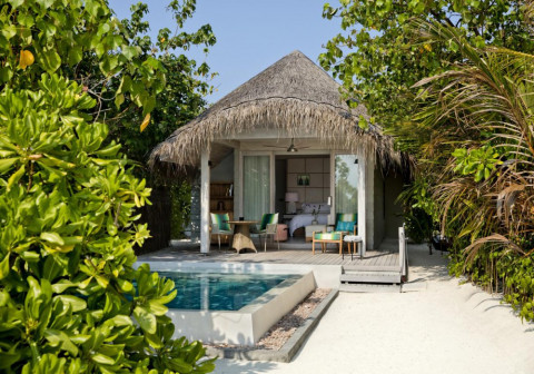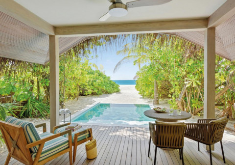 1 номер Sanctuary Pool Villa (715 кв.м, вилла на пляже, состоит из трех спален с гардеробными, гостиной, столовой зоны, ванной комнаты, просторной веранды с частным павильоном, приватного бассейна)