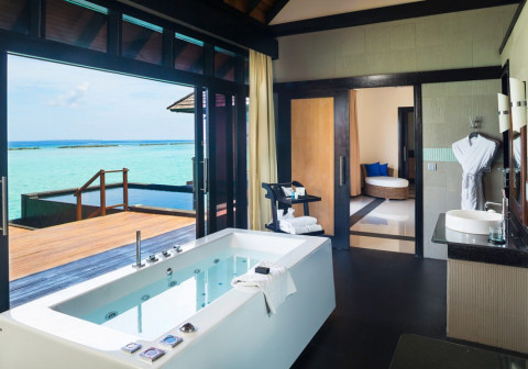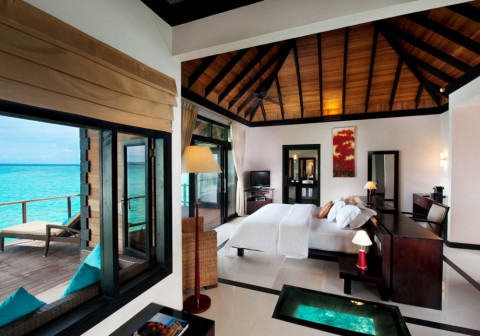40 номеров Water Villas (85 кв. м, виллы над водой, спальня, ванная комната, пол со стеклянной панелью)
