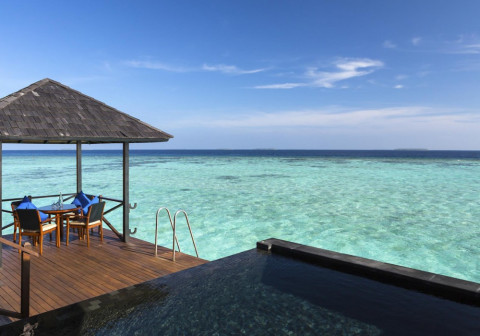 5 номеров Infinity Water Villas (155 кв. м, водные виллы с более уединенным расположением, спальня, отдельная гостиная, зона отдыха на открытом воздухе, джакузи на террасе и частный бассейн)