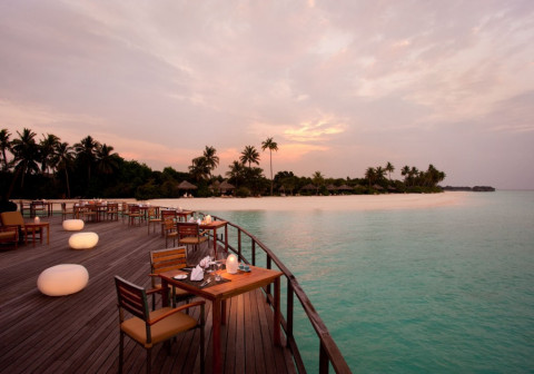 15 ресторанов и баров: Iru (основной ресторан, шведский стол); Bamboo (ресторан на пляже, вьетнамская кухня); Waters Edge (главный бар на пляже); Flavours (ресторан над водой, французская кухня); The Wine Cellar (винный погребок при ресторане Flavours); La Cremeria (кафе-мороженное); Taste of India (индийская кухня); Tappanyaki (японская кухня); Islander's Grill (блюда местной мальдивской кухни); The Trio (итальянский ресторан над водой); Sinbad (арабский ресторан); Bubble Lounge (лаунж-бар); The SPA Cafe (ресторан здорового питания возле SPA-центра); Fluid (семейный бар и лаунж у бассейна); Reflections (бар у бассейна для гостей старше 16 лет). Организация приватных ужинов.