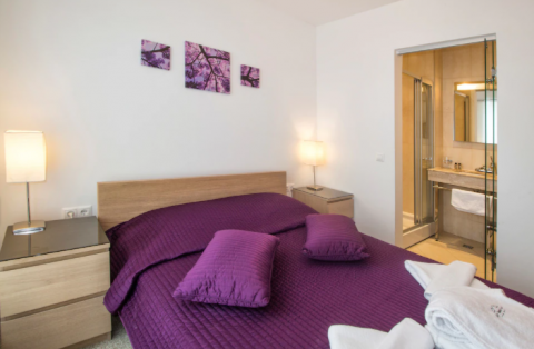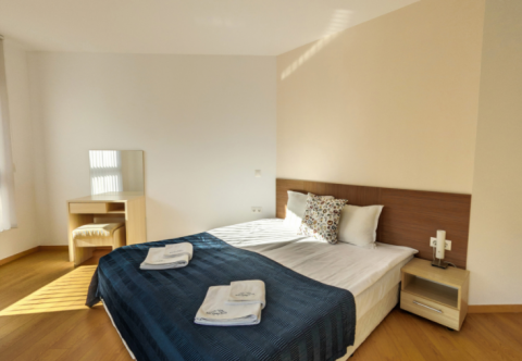 1 BEDROOM APARTMENT: гостиная с раскладным диваном/креслом и кухонным уголком с оборудованием/мини холодильник и столовая посуда/; отдельная спальня с двуспальной или двумя односпальными кроватями; 1 ванная комната с душем или ванной; макс. 4в; 60 м2 ;