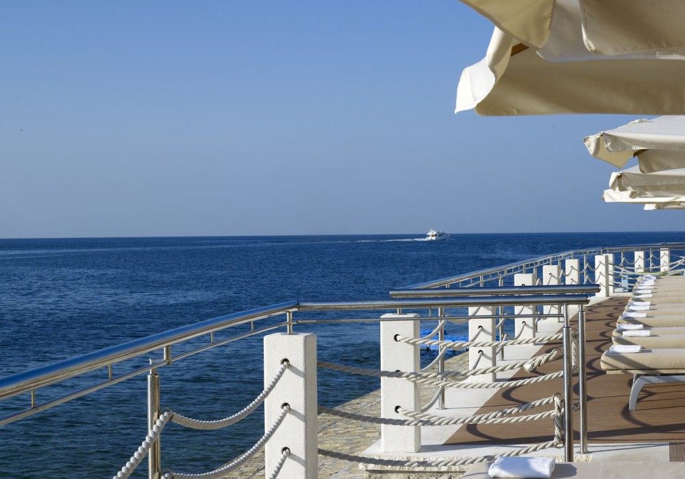 Скалисто-галечный пляж, награжденный "Голубым флагом", в 50 метрах от отеля, зонтики и шезлонги - за доп.плату, есть кабинки для переодевания, спасатели на пляже.