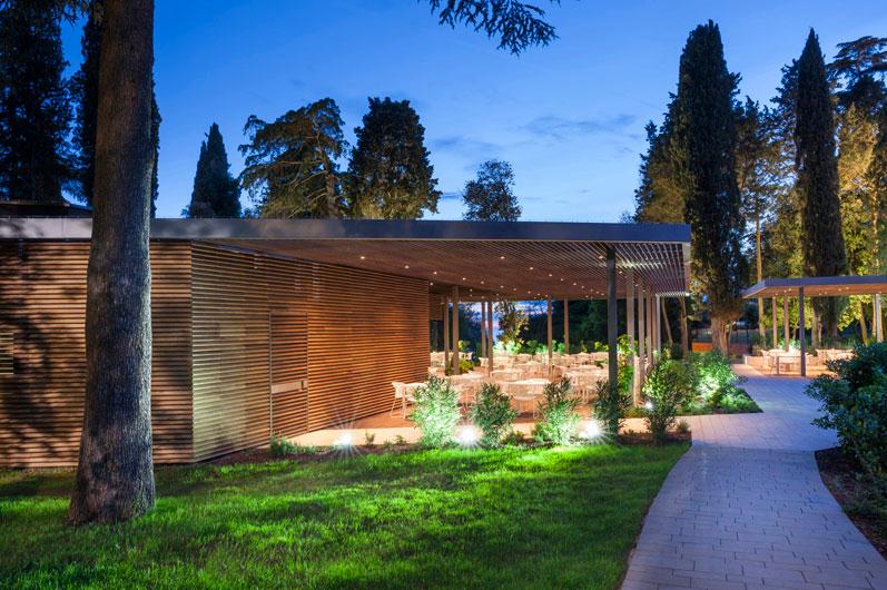 Это один из самых популярных отелей Истрии с богатыми традициями, великолепной, уникальной территорией и самым большим отельным открытым бассейном. Комплекс буквально вписан в столетний природный парк Zlatni Rt, благодаря чему его территорией является непосредственно часть парка. Перед сезоном 2005 года был открыт новый ресторан a la carte, перед сезоном 2006 года были отремонтированы холлы и номера. Здание отеля, построенное по проекту одного из самых известных архитекторов бывшей Югославии, не может быть перестроено по закону Хорватии и имеет немного «состарившийся» внешний вид. Все номера имеют вид на парк, за исключением нескольких номеров на последнем этаже, откуда можно увидеть «маленький кусочек» моря. Отель обладает непередаваемой атмосферой и уютом.