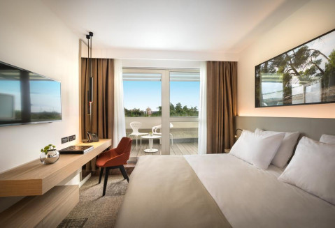 Перейти на сайт отеля4 лифта, открытый комплекс бассейнов с водными эффектами площадью 1035 кв.м., детский бассейн с морской водой 68,82 кв.м, (лежаки и зонтики у бассейнов -бесплатно), крытый бассейн (126 кв.м) с морской водой; терраса для загара - 2350 кв.м. с 200 шезлонгами, обслуживание номеров (7:00-23:00); номера для некурящих, услуги консьержа, Wi-Fi (бесплатно), прачечная, бесплатная парковка (не охраняется), хобби-клубы, школа хорватского языка, вечерние развлекательные программы (живая музыка, тематические вечера, выступления артистов, пиано-вечера и т.п.)
