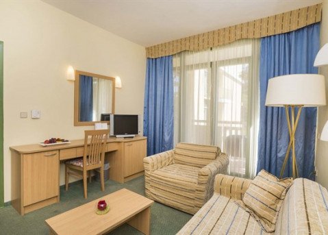 Питание: All inclusive: завтрак, обед, и ужин – шведский стол; закуски у бассейна (11:00 – 17:00); один ужин на каждые 7 дней проживания в ресторане на террасе (по предварительному заказу, только в хорошую погоду); напитки (местное вино, разливное пиво, вода, соки, кофе, чай) и в лобби-баре (08:00 – 00:00, безалкогольные и алкогольные напитки местного производства, кофе, чай – по карте напитков, импортные напитки, вино и пиво в бутылках – за доп. плату)