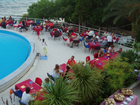 Рестораны и бары: ресторан с видом на бассейн и старый город Корчулы (завтраки, обеды и ужины, шведский стол, традиционная далматинская кухня, выбор вин, 200 мест, кондиционеры, открытая кухня, тематические вечера раз в неделю), аперитив-бар на террасе, кафе на террасе.