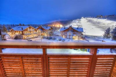 БАЛКОН: вид на запад (частично на передние cклоны и на гору Kätkätunturi) или на восток (во внутренний двор Levin Alppitalot), или на юг (на Передние склоны).