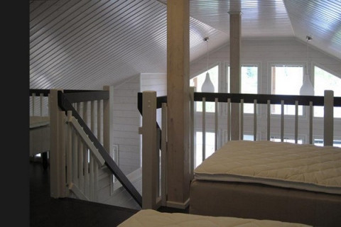 На вилле Blueberry может разместиться до 8 человек. В этом роскошном коттедже (106 м2) есть гостиная, 2 спальни, кухня, сауна с электрической плитой, 2 туалета, прихожая, верхний этаж и терраса (40м2).
