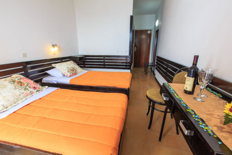 B STD 3*: номера находятся в главном корпусе, французская или раздельны кровати, ванная или душ, кондиционер, мини-бар, интернет, балкон, большинство с видом на море (телевизора нет). Максимальное размещение 3 человека.