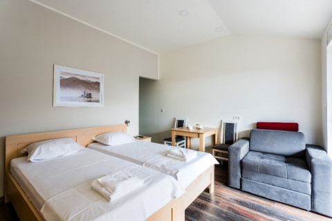 6 studio 02 (16 m2) - номера с французской или раздельными кроватями, душ/туалет. Данные номера не имеют балкон, есть общая терраса. Максимально допустимое размещение - 2 человека.