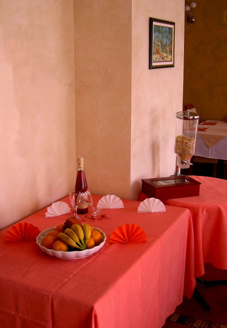 Уборка и смена полотенец – каждый день, смена постельного белья – через семь дней. Гостиница располагает парковкой. Интернет платный (1 евро в день). Работает на базе завтраков (по меню).