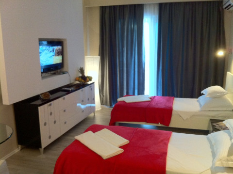 В номерах: балкон или терраса, кондиционер, ванная комната с душем, фен, мини-бар, кабельное ТВ с российскими каналами, интернет, сейф, телефон, набор для приготовления чая и кофе. Ежедневная уборка, смена полотенец по запросу, смена постельного белья раз в три дня или чаще по запросу.