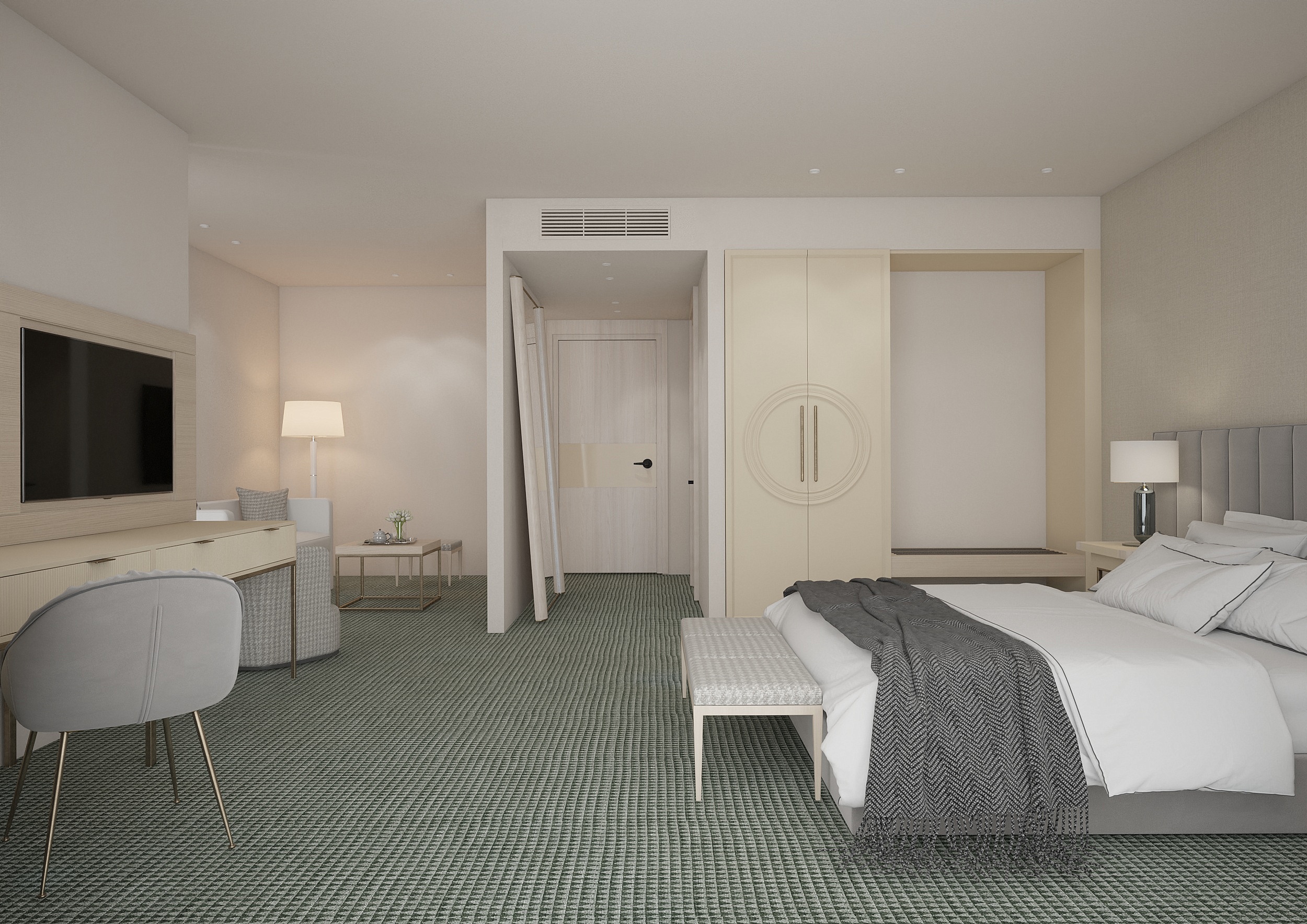 В Studio: однокомнатный номер, французская или раздельные кровати , софа, кондиционер, Wi Fi интернет, спутниковое ТВ, минибар, чайник, санузел с душевой кабиной, халаты, тапочки, балкон. Максимальное размещение: 3 взр. Площадь: 36 м2