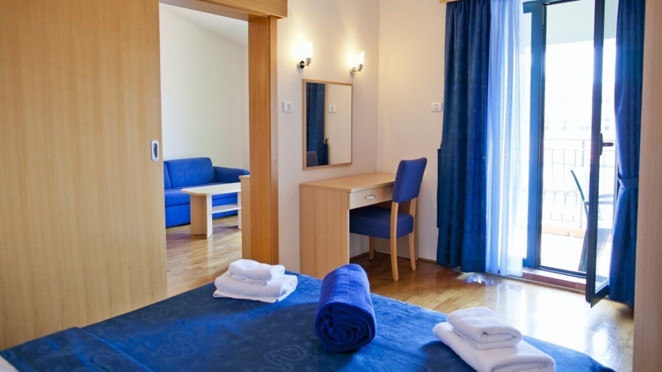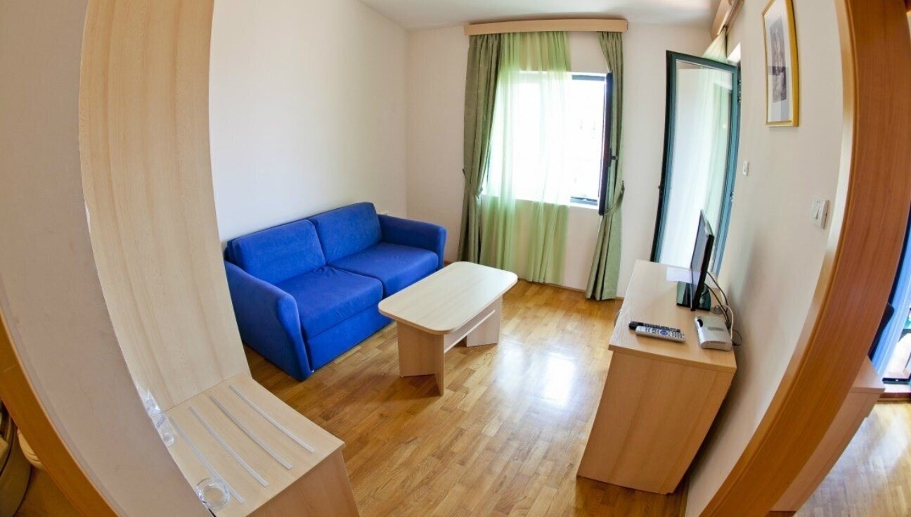 В Будве, неподалеку от отеля Словенска Плажа. Расстояние до аэропорта Тиват – 23 км., до аэропорта Подгорица – 60 км. Рядом есть вся необходимая инфраструктура – магазины, кафе, рестораны национальной кухни.