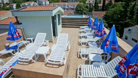 Современное четырехэтажное здание, круглосуточная стойка регистрации, лифт, открытый бассейн на крыше с панорамным видом на Будву и Старый город, бесплатные лежаки для гостей отеля, душ у бассейна, бар с террасой с видом на море, ресторан итальянской и национальной кухни, беспроводной интернет, прачечная, прокат велосипедов и автомобилей.