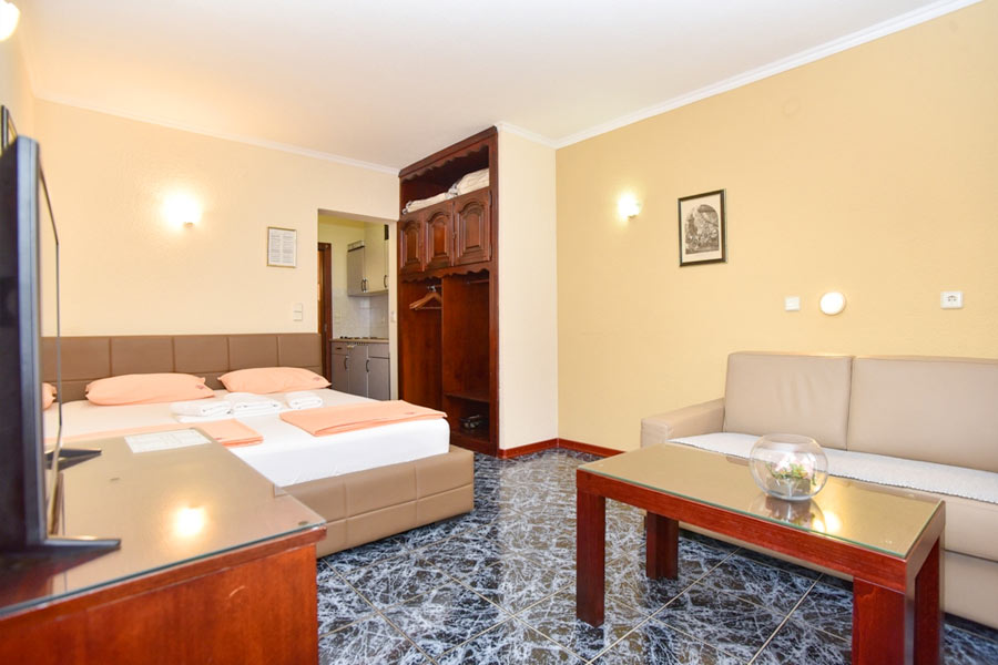 Двухместные номера категории 3*, апартаменты — 4* (черногорская категоризация).